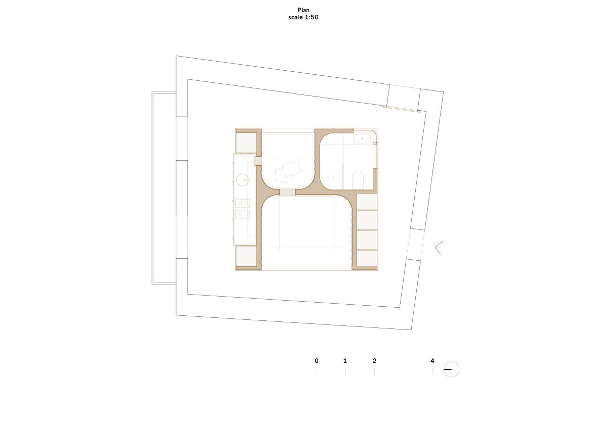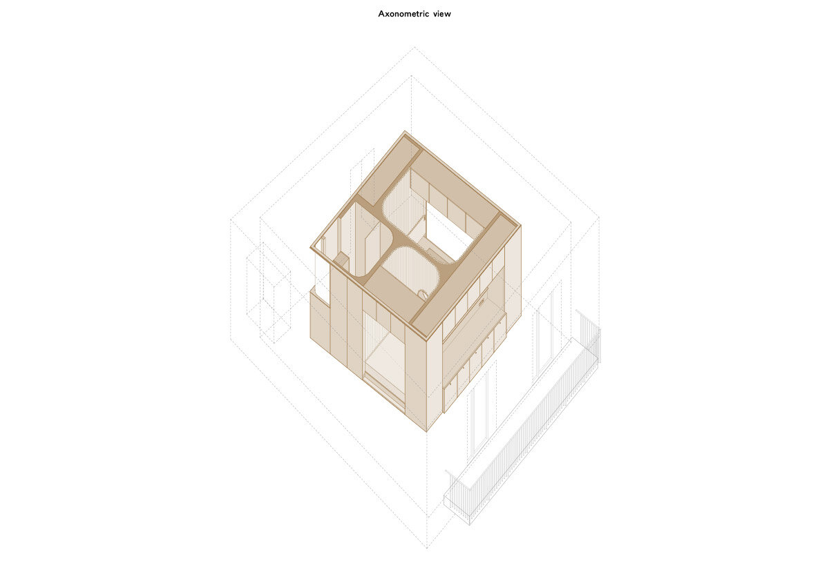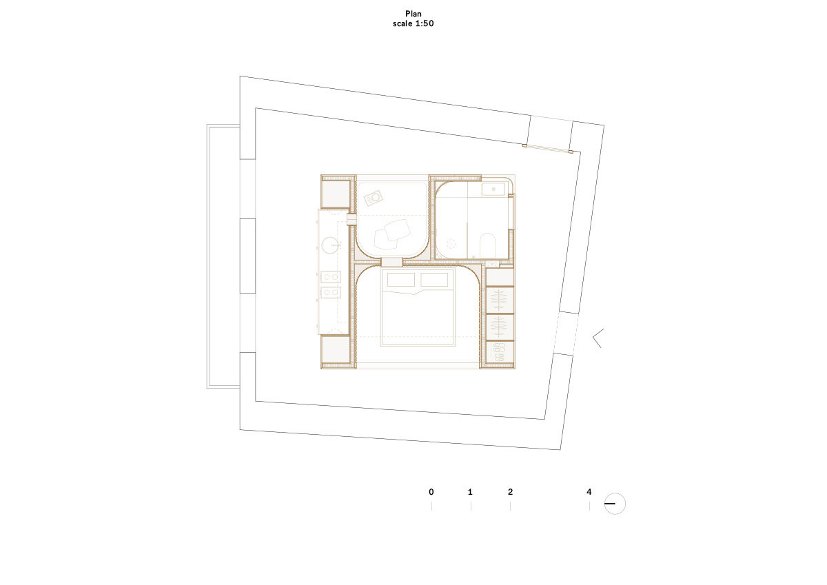 the Golden Box behaves like a window framing a courtyard | image © Simone Bossi