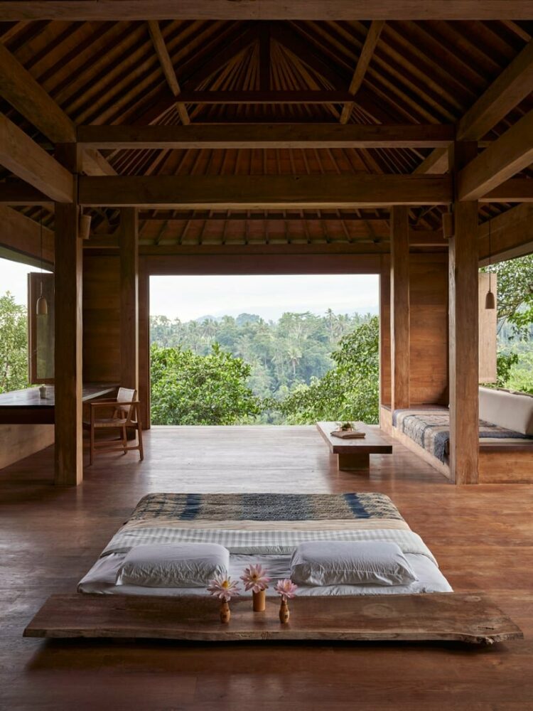 Located in the neighborhood of Payangan, Bali, ‘Kubu Sidem’ expands into layers and accommodates the home of the textile designer Sebas Mesdag, and the indigo painting studio Tian Taru. The project develops two main cabins, the two-floor ‘Joglo’, a traditional vernacular Javanese house, stretching completely open with no doors; and the two-floor workshop where the studio team experiments with indigo plants and painting techniques. The construction follows a ‘spontaneous’ design approach implemented from an ancient Joglo structure imported in pieces from the island of Java. The open layout allows nature to flow inside merging the wooden frame with the rich surrounding vegetation.