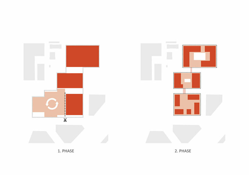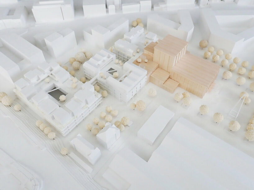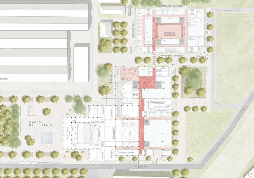 With an eye on sustainability, the architects (see more here and here) sought to consider the future use of the building right from the early planning stages, taking both ecology and economy into account. The goal is to avoid unnecessary demolition, with a structure that can anticipate its future needs, maximizing the potential for re-use and minimizing the need for recycling. The main hall, along with the stage and foyers, is crafted using wood, ensuring its full demountability. The intention is for this section of the building to be relocated after renovation, promoting a circular approach to construction. As for the remaining, they are designed with a robust skeleton constructed from CO2-reduced concrete. This design allows for a high degree of flexibility, enabling a wide range of programs and commercial uses to be accommodated in the future.