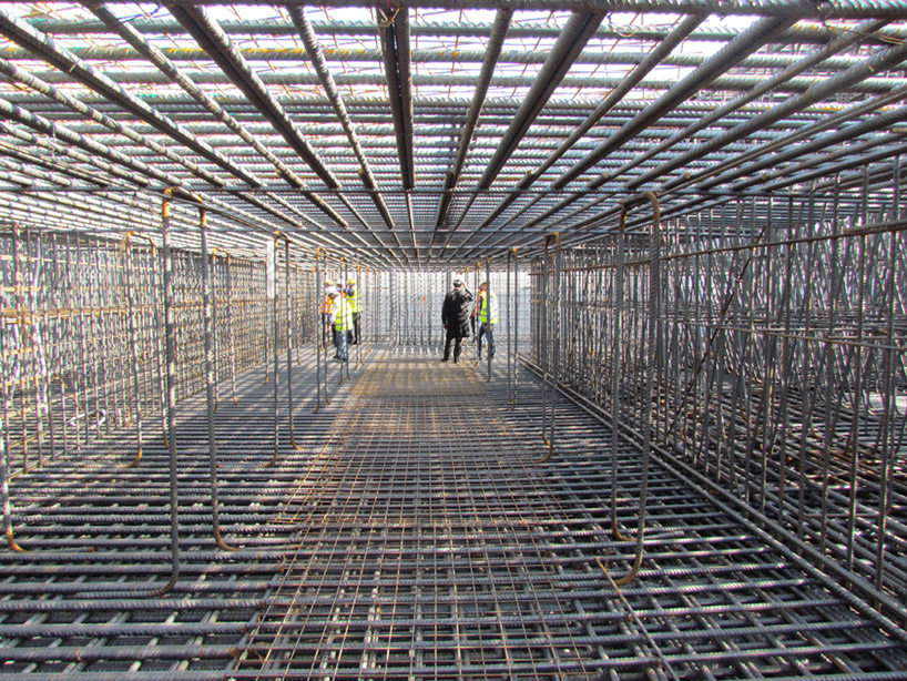 construction is underway in milan, italy for the ‘citylife tower’, designed by tokyo-based arata isozaki and milan-based andrea maffei. the foundation consists of a continuous block of concrete which covers 4,260 cubic meters, requiring 42 hours of uninterrupted work to complete. 62 concrete piles measuring 30 meters in length and support the 1,200 ton steel reinforced structural base.