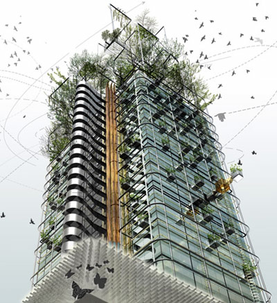 rendered perspective to maximize the natural sunlight and shadow effect, the exterior skin will be completely white