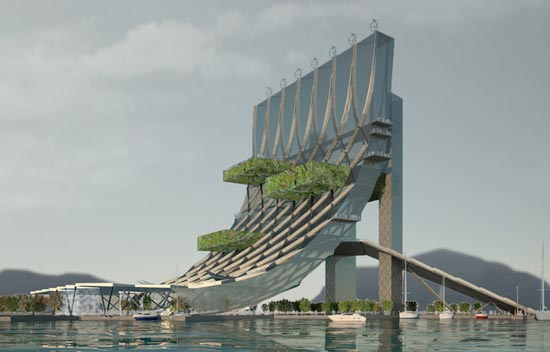a continuation of the existing rock formations, the hotel is articulated as a series of stepped horizontal planes, courtyards, and gardens.