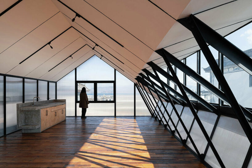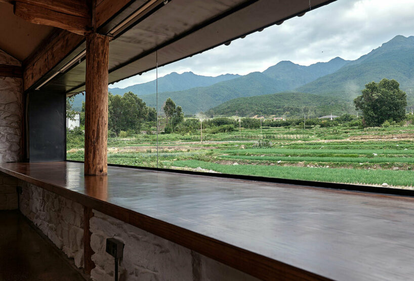 vertical windows frame the landscape to recall traditional Chinese paintings