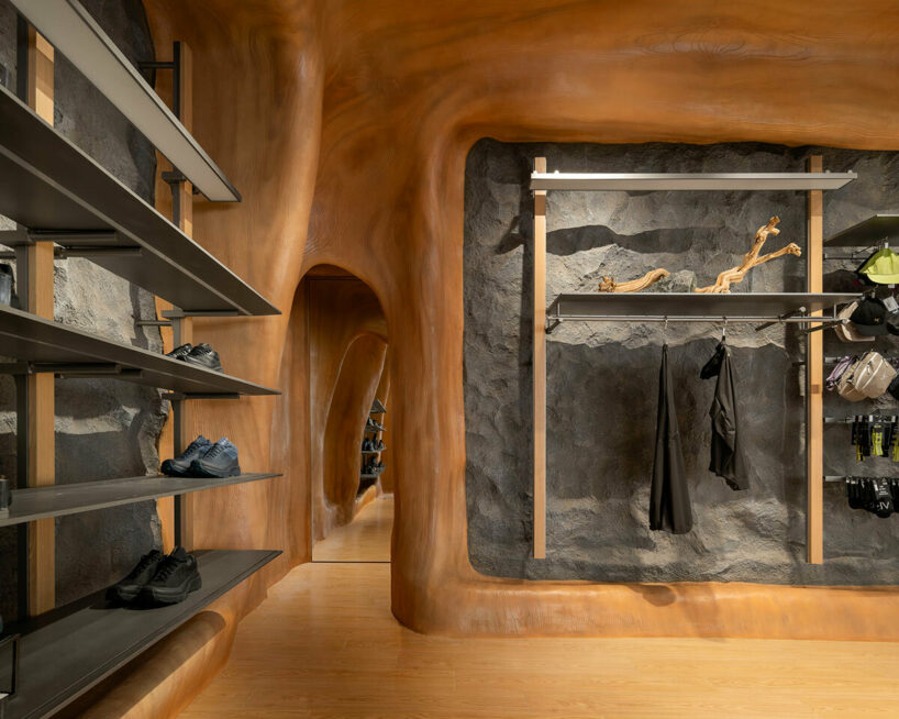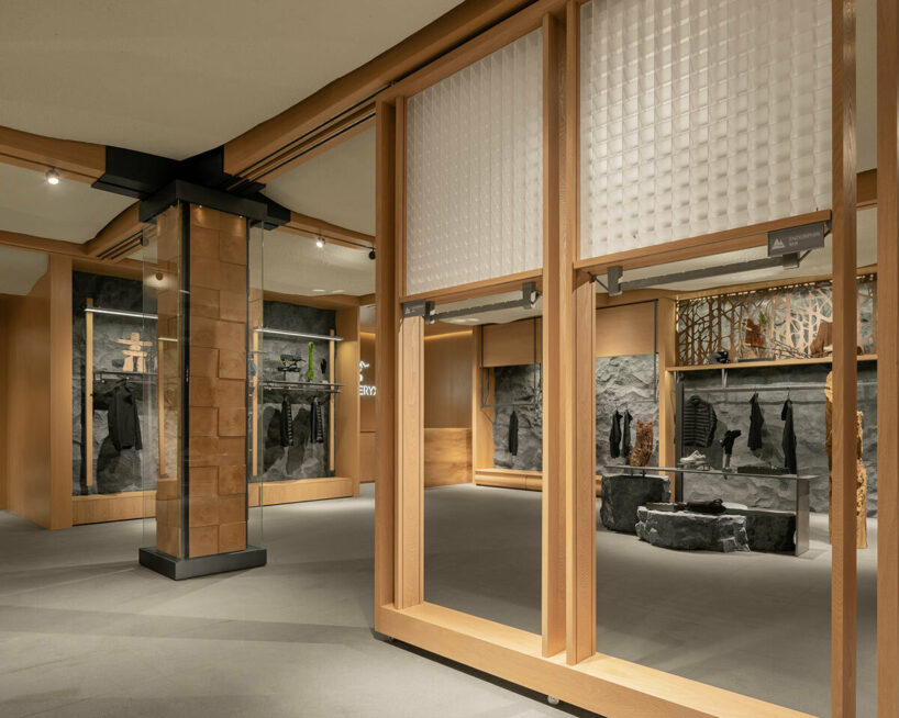 wooden structures and mountain-shaped displays further evoke the natural atmosphere