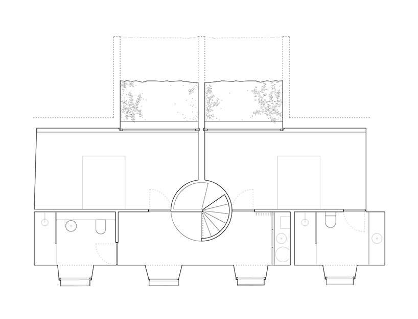 The aim of this project was to invert the building’s original function both in terms of the interior space and its relation with the exterior without disturbing the row’s uniformity. Prior to intervening, the building’s upper floor, which could not be accessed from the one below, was a single-floor apartment mostly cut off from the estate. Wanting to resolve that disconnect, the studio recalibrated the spatial dynamics by converting the main façade to the rear one, opening up the Tenant House to the estate, both visually and functionally.