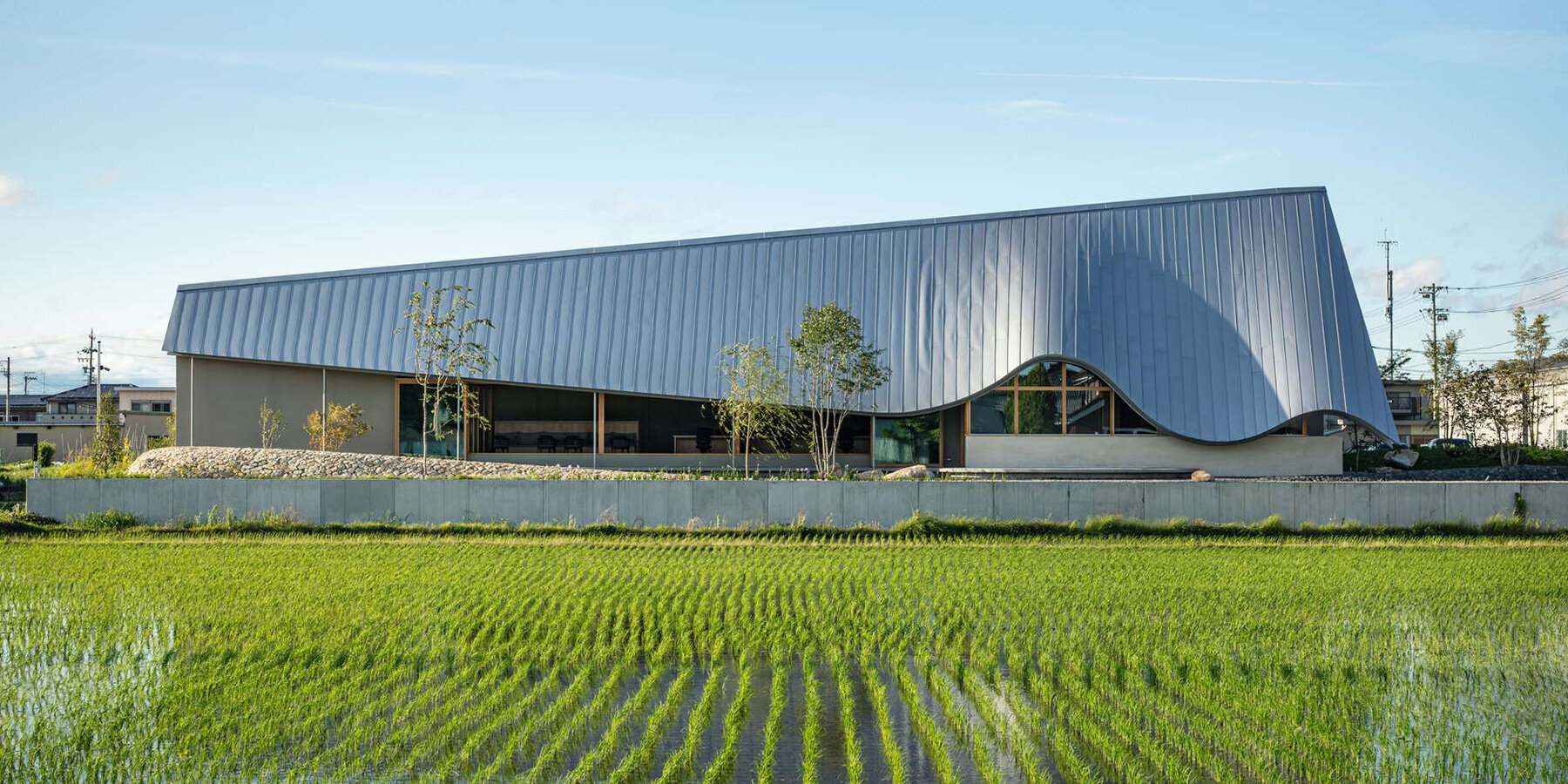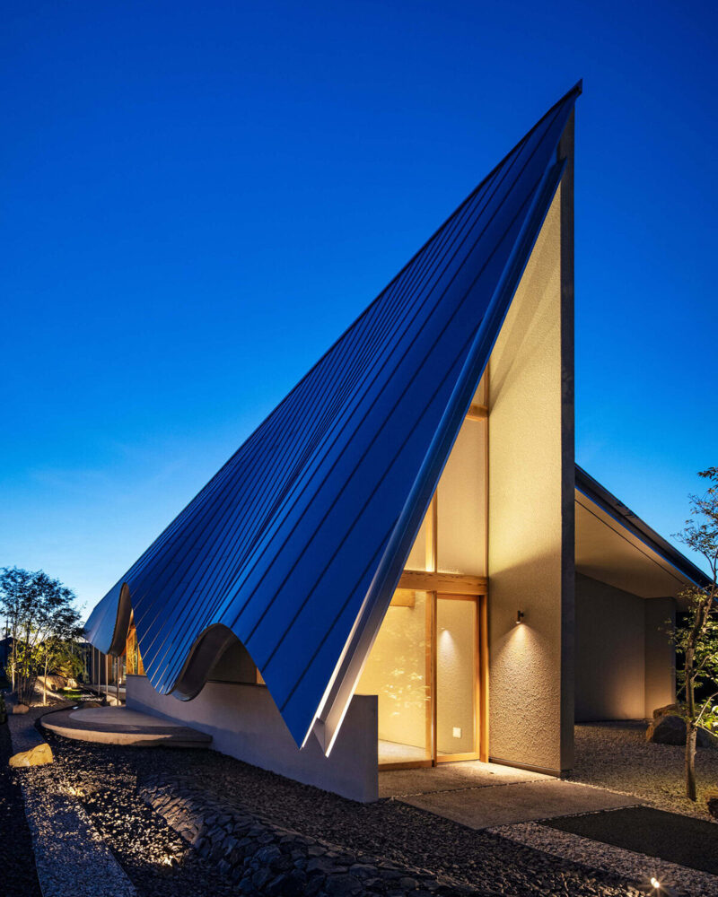 its undulating form captures reflections and changing sky colors