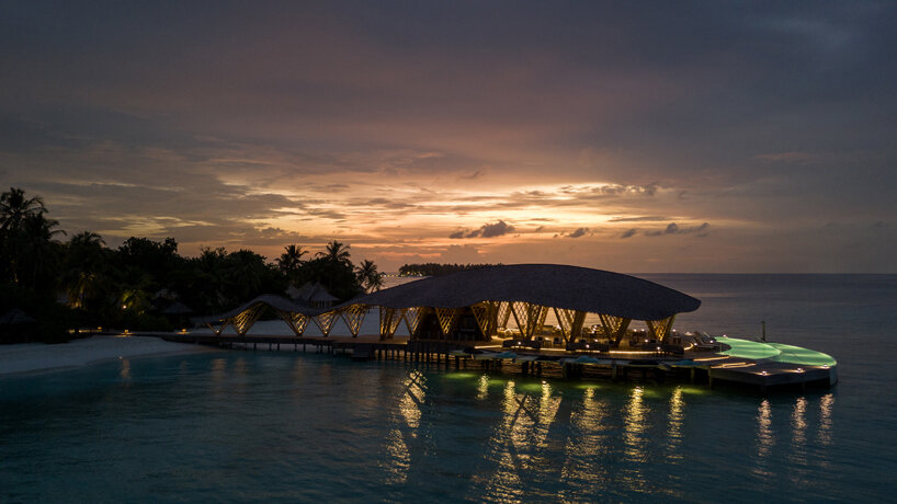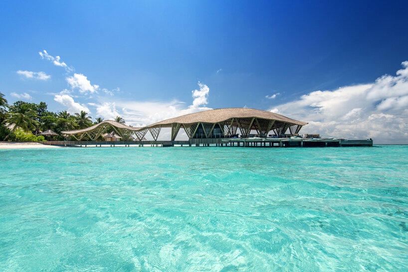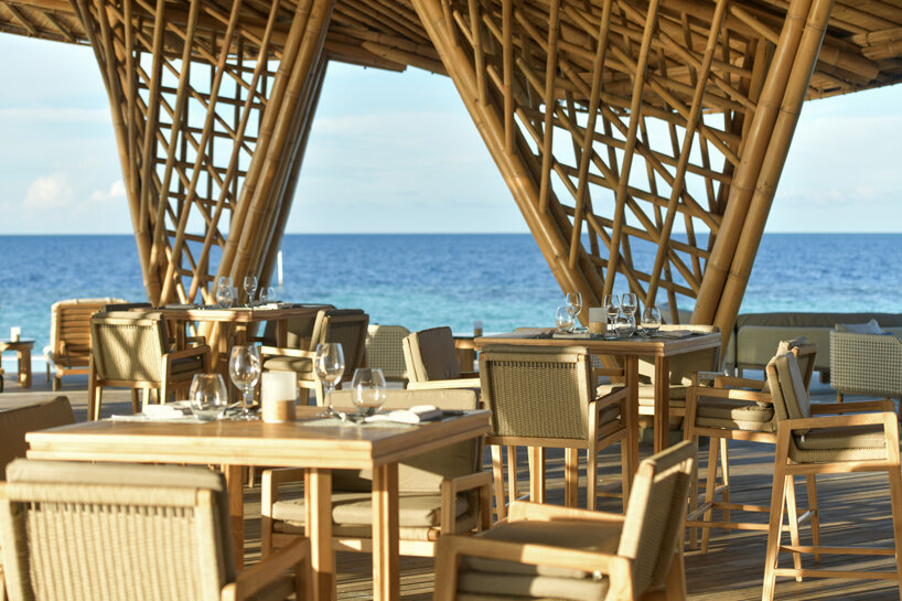 atelier nomadic's overwater bamboo restaurant emerges like a sea creature in the maldives