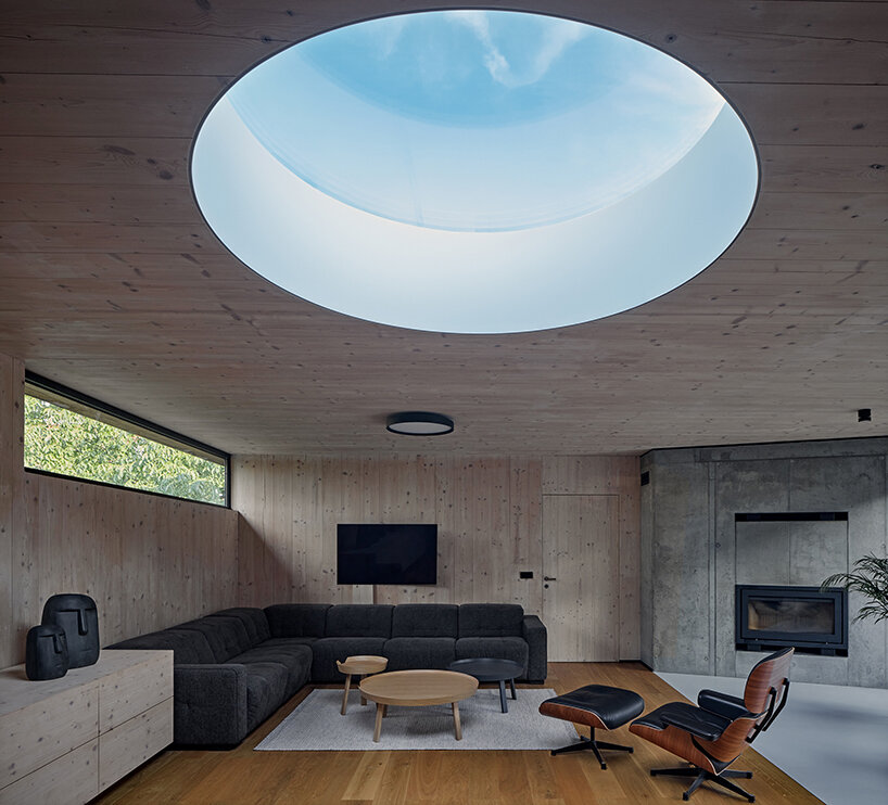 lead architect marek štěpán elaborates:I wanted to try and create an inner disposition in which people can move naturally, where they can swim like a fish in the water. the kind of relaxed living where you subconsciously anticipate where everything is. the natural flow of the daylight is most important. as light flows through large windows as well as through circular openings in the roof. when I first visited the completed project, my eleven-year-old daughter unexpectedly stayed there for the next three days, because she loved the space so much.’