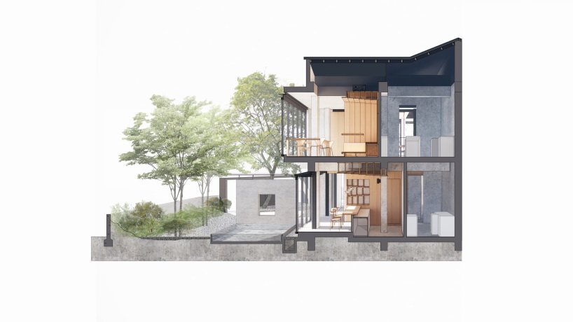 ‘isagi restaurant’ is one of the japanese townhouse duplexes remaining in the area, so that atelier SUPERB in collaboration with chen-tien chu architect, sought to generate a cascading relationship between the original and new, curating its historical characters over time. atelier SUPERB turns an old concrete townhouse into a new restaurant in taiwanall images courtesy of atelier SUPERB