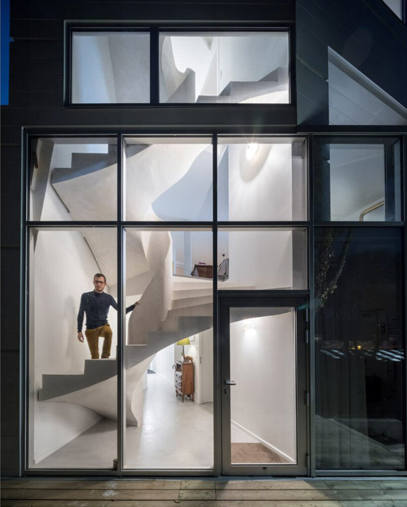 avignon architecte builds mysterious 'twist' house with sculptural ribbon staircase in nantes, franceavignon architecte builds mysterious 'twist' house with sculptural ribbon staircase in nantes, france