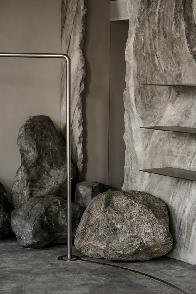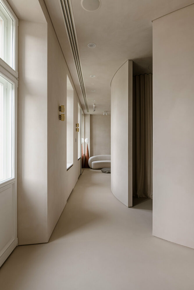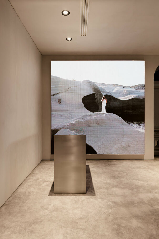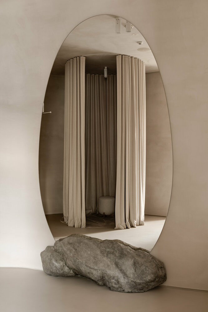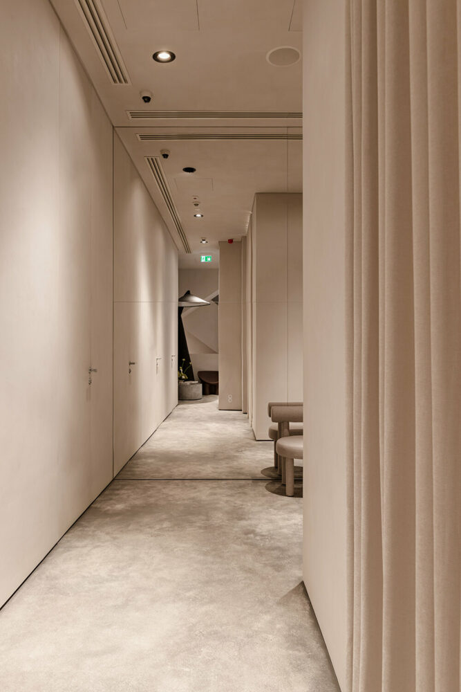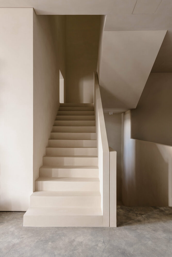 the project sits like a ring placed over the terrain, with its funnel-like roof forming a shaded perimeter walkway and an introverted core.