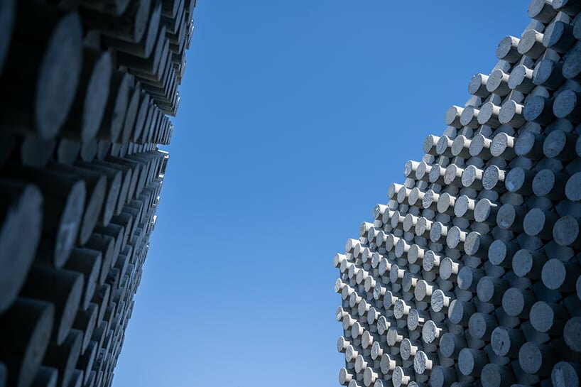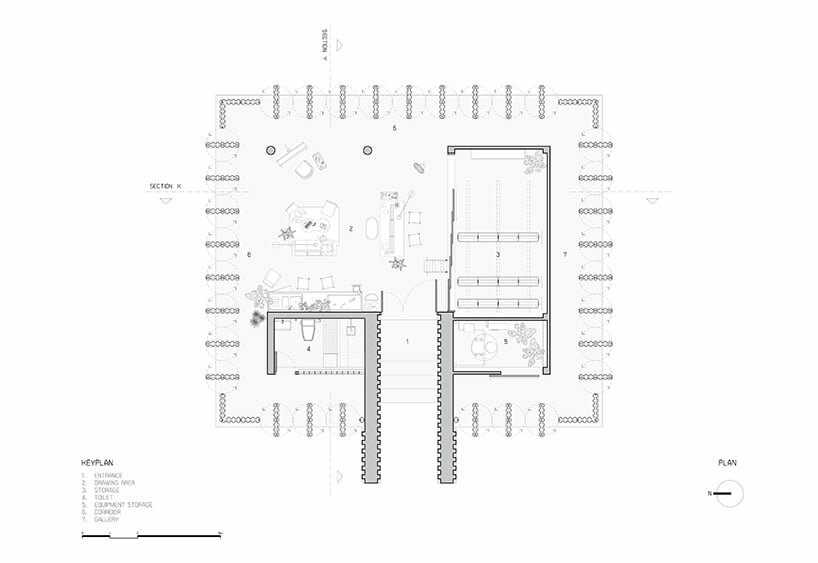 bamboo battens and discarded concrete spacers envelope art studio by 11.29 studio in thailand