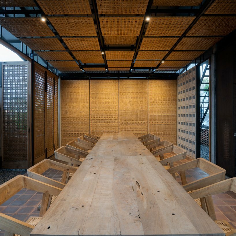 In contrast to the ground floor which mainly uses ‘woven bricks’, on the second floor, andyrahman thoroughly explores woven bamboo and rattan to prove that local, ancient materials that are outdated, can still be used in more contemporary architectural designs.