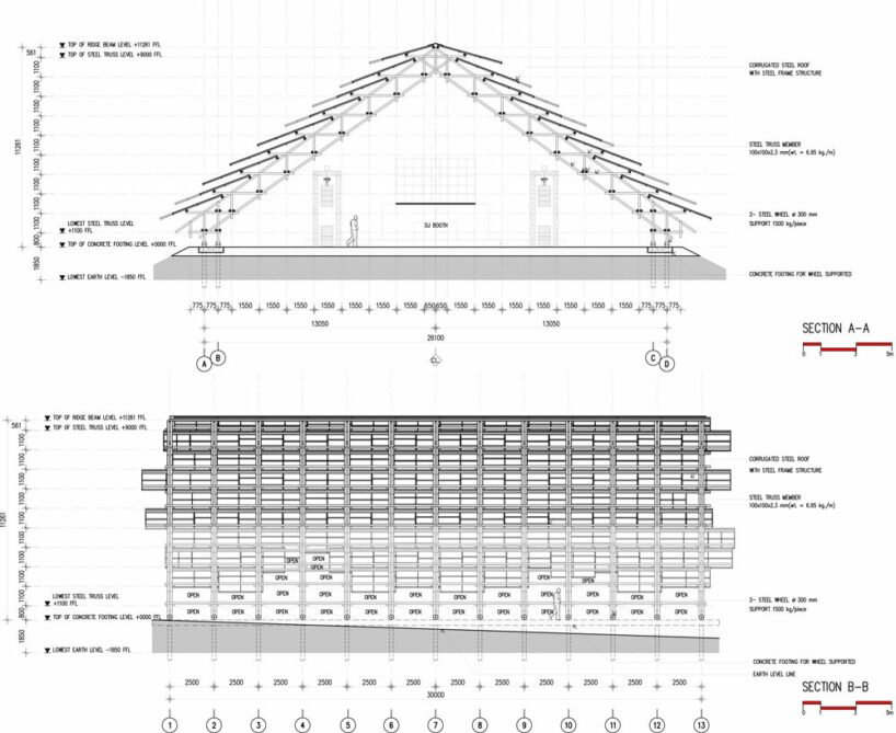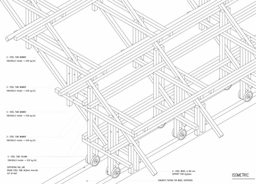 the roof’s design features standard 100mm x 100mm square steel tubes, each 6 meters long