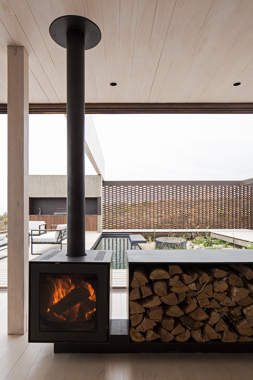 Although this is designed as a beach house, the structure strays away from this typology by turning towards itself. It creates visual connections with the sea and the surrounding wildlife, but it does not fully open to the natural surroundings. This results in a unique experience that is different from actually going to sit by the sea, yet still provides the opportunity to enjoy the beach.beach house by juan pablo ureta takes cues from rock clusters in chilean natural landscape