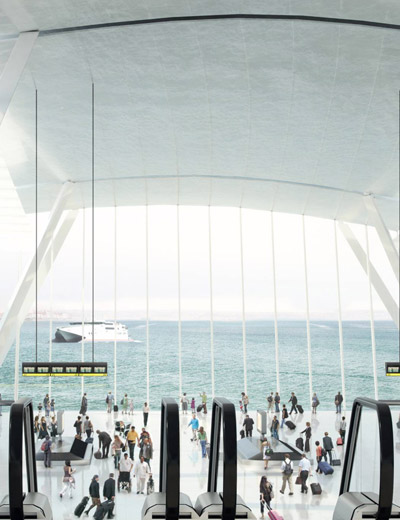 public lobby with connection to underground high-speed rail line