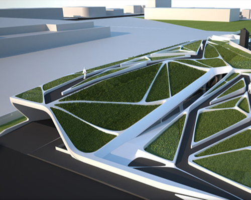 rendered bird’s eye view of the green roof image courtesy belzberg architects