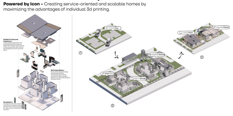 Beta Realities’ design for Community First Residencies in Austin, Texas, offer a personalized solution through 3D printable housing | all images courtesy of Beta Realities and Morean