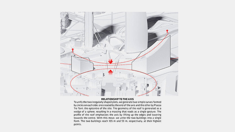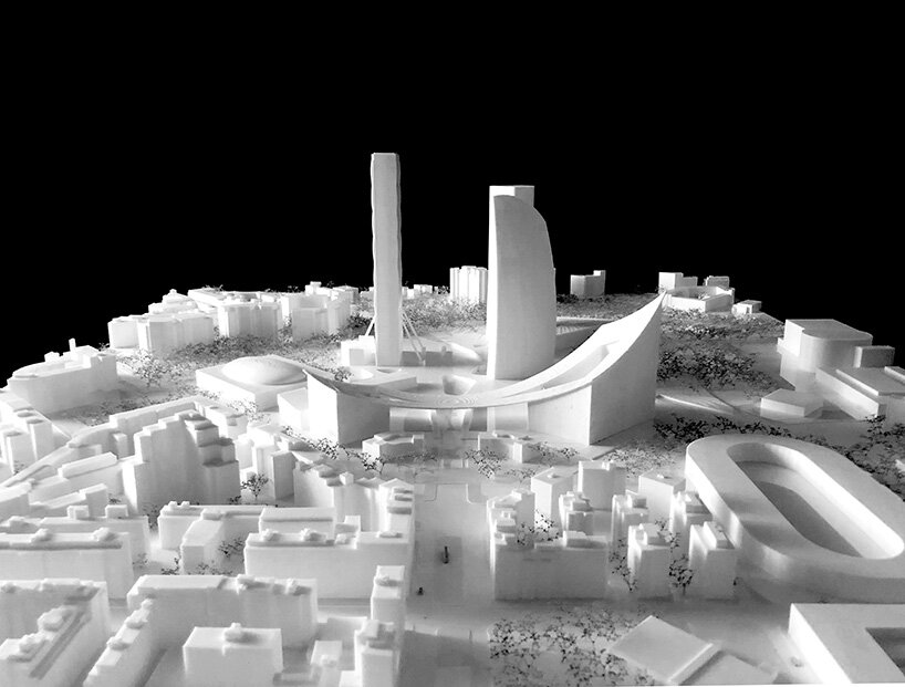 BIG replaces the idea of twin towers with two mid-rise volumes