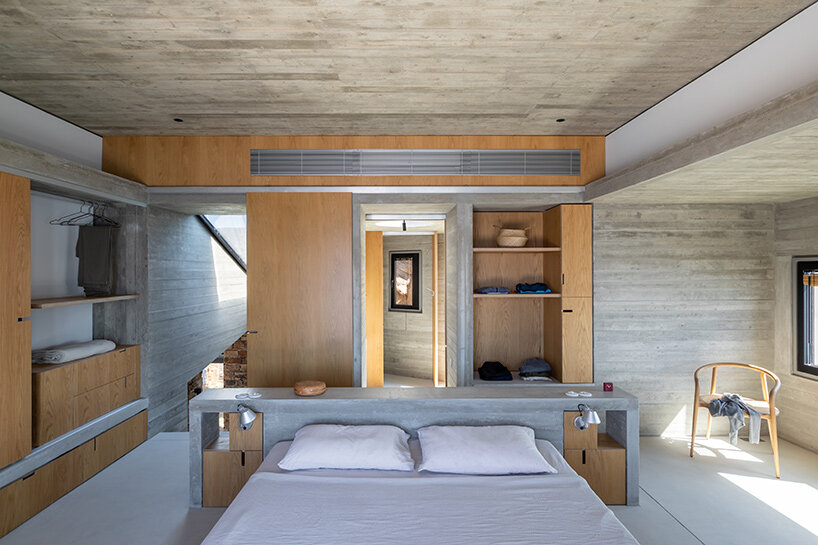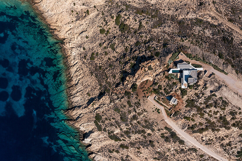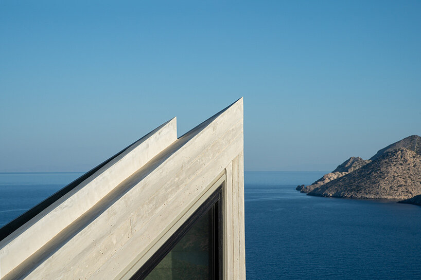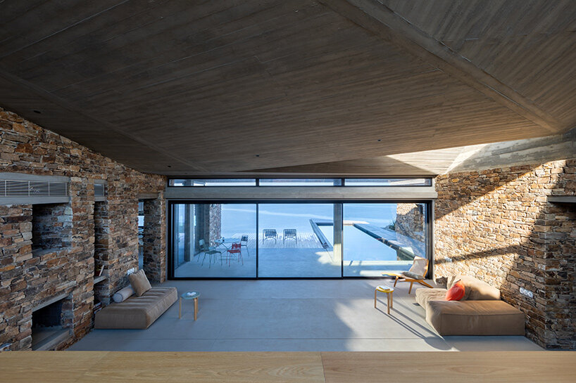 the central living space acts as a protected communal interior with expansive sea views