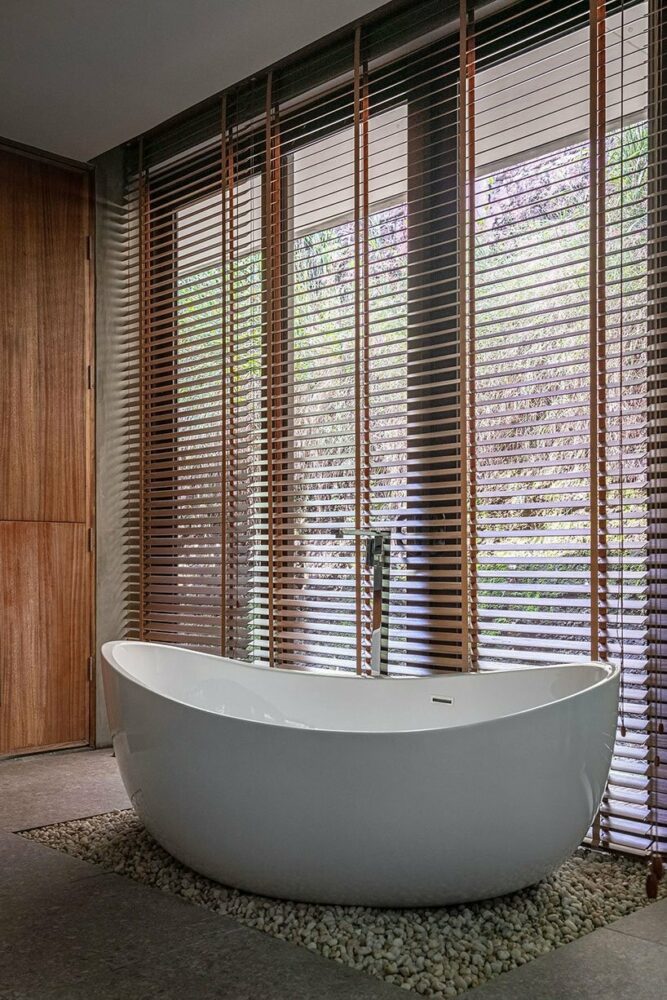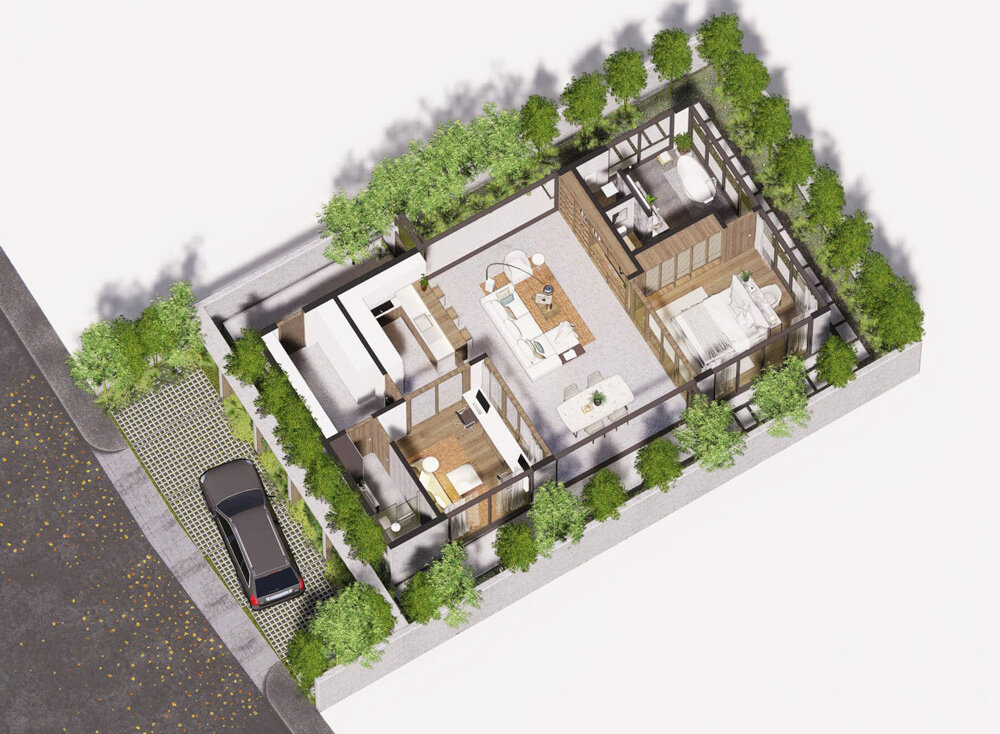 the building maintains a low profile, allowing the lush greenery to take center stage