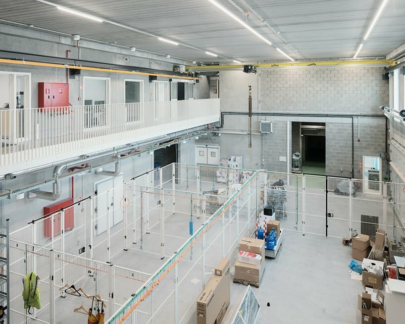 The building forms a low-column structure designed as an open frame planning different program points. Shaping the head of a new development between the water tower and Fort Napoleon in Ostend, at the crossroads between the ‘Vuurtorenwijk’ and the ‘Oosteroever’, the project combines a technical research program with an important public and urban anchor function. The imposing volume by the evr-architecten design studio stands out due to its profile, plinth, and uncommon materiality, forming the pivot between the lighthouse district and the eastern bank.