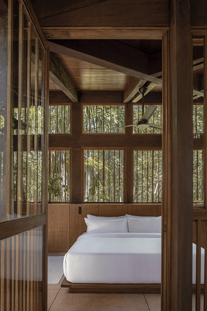 Having recently undertaken the redesign of the MET wing in New York, Frida Escobedo approached this project by following the hotel’s desire to create a place that contributes to environmental, social, and cultural regeneration while offering its guests an equally regenerative experience; the property sits a few steps from the mostly intact jungle, where wildlife freely roams the property. Complementing that tropical atmosphere is a palette of wood, natural light, and neutral tones taking center stage across all 26 accommodations. The entire construction is even designed to age naturally over time and tell its own story.