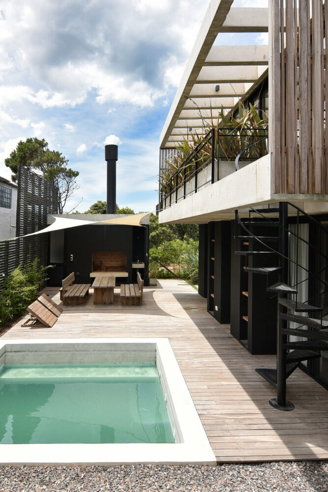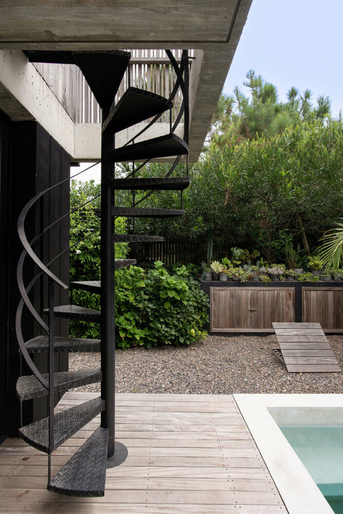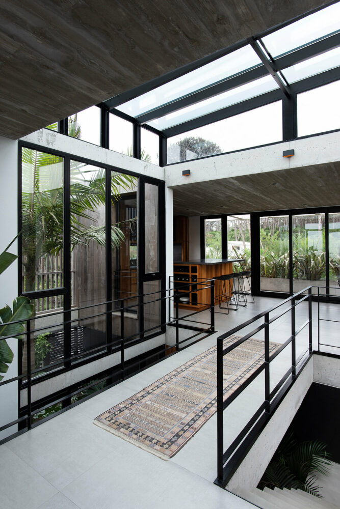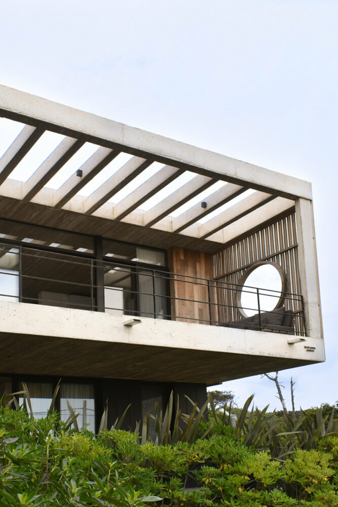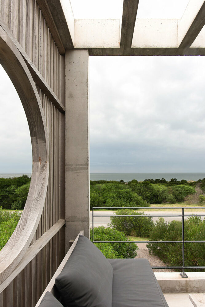 the project sits like a ring placed over the terrain, with its funnel-like roof forming a shaded perimeter walkway and an introverted core.