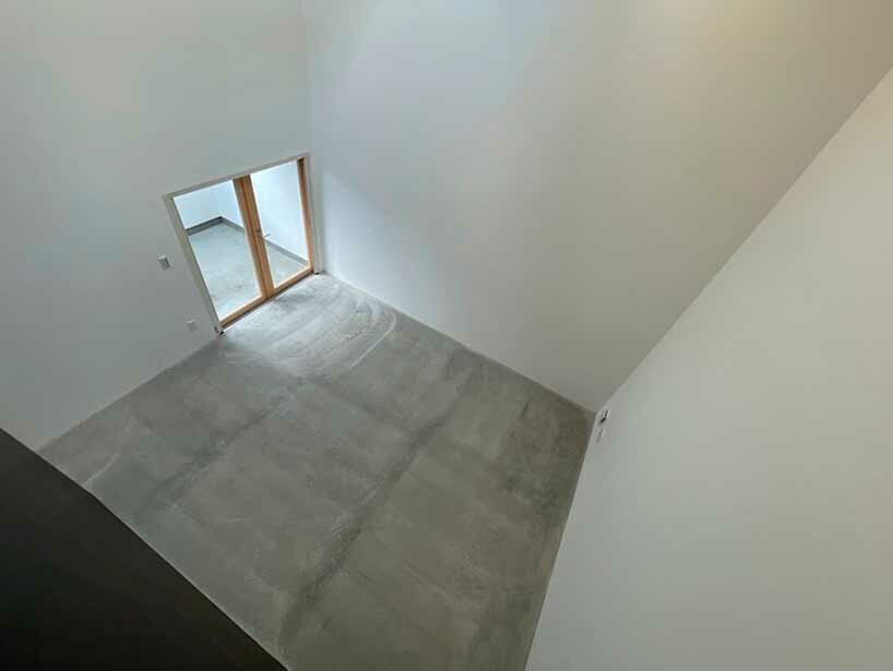 the interior arrangement benefits from the natural light shedding through the inclined skylights