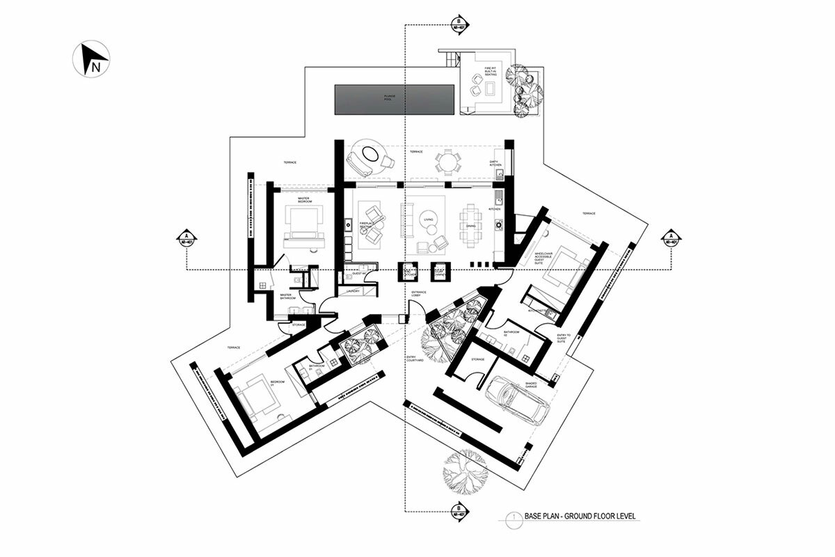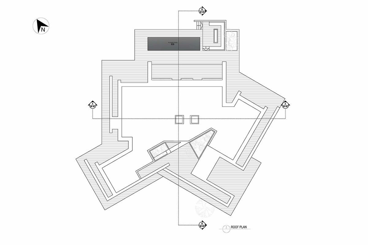 a continuation of the existing rock formations, the hotel is articulated as a series of stepped horizontal planes, courtyards, and gardens.