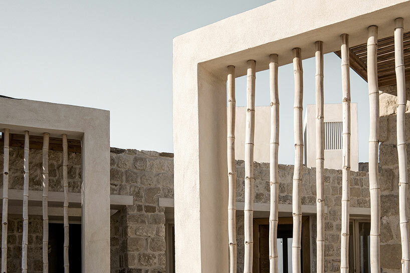 heavy stone walls absorb and release heat, a common passive strategy for desert climates