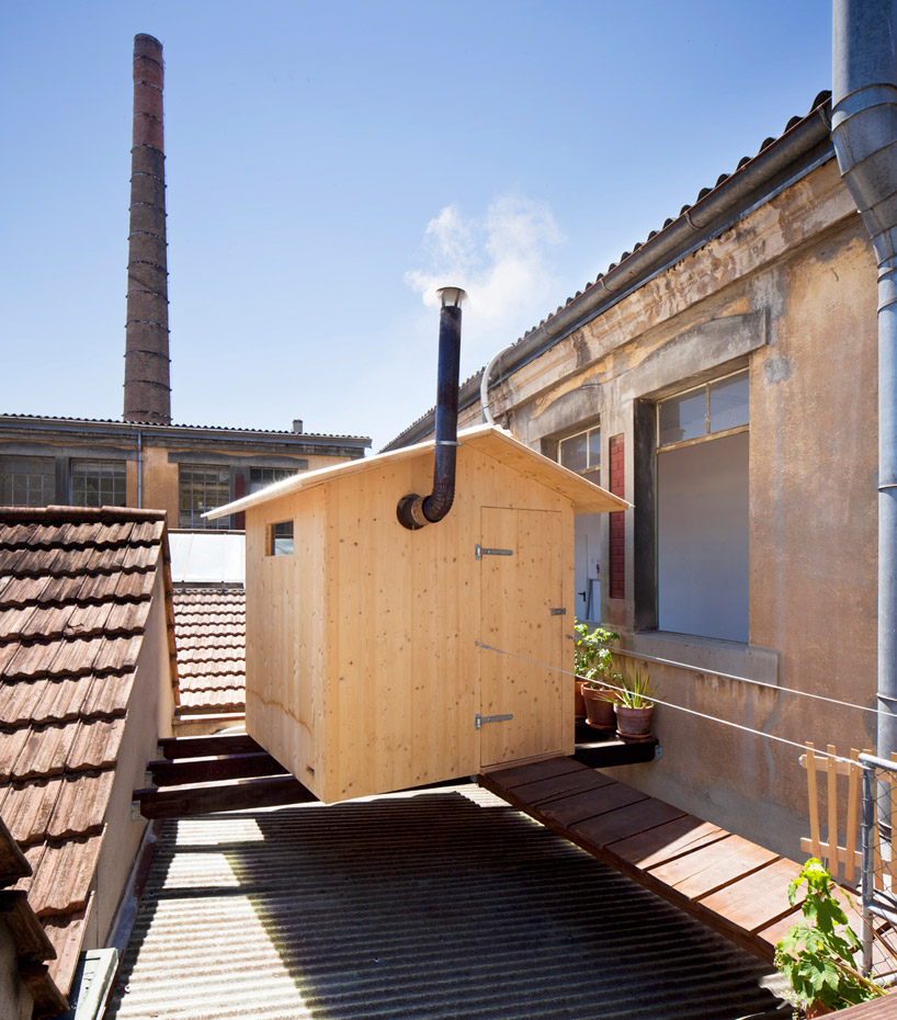 elevated base supports allow sauna to integrate into the rooftops image © dylan perrenoud