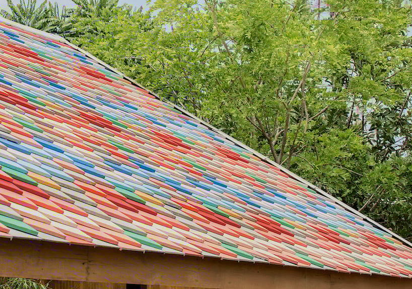 FLAT12x has also utilized a contrasting color palette which recalls that of the vibrant ancient era of the kingdom, while reinterpreting it with hues in a softer palette. The terrace area’s roof is painted in a Thai weave pattern that harmonizes with the hues found in the open-air garden below it.