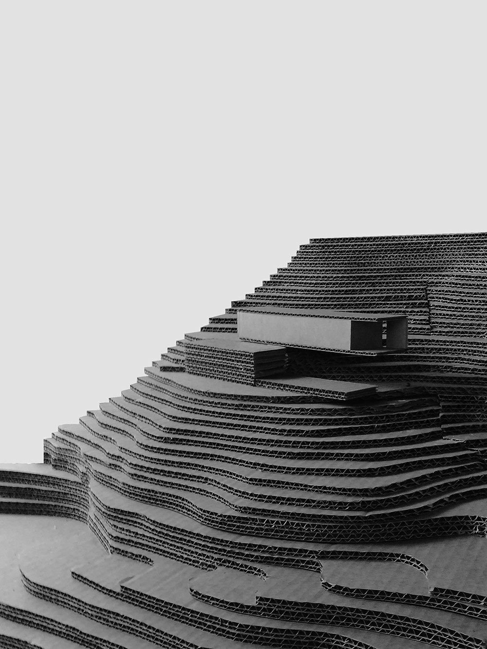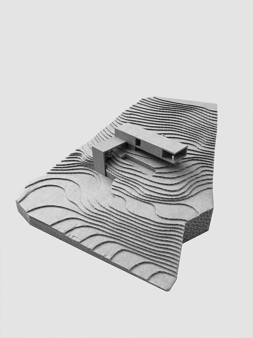 a continuation of the existing rock formations, the hotel is articulated as a series of stepped horizontal planes, courtyards, and gardens.