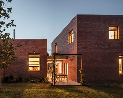 spanish practice HARQUITECTES has shared with us one of their newest projects located in the small medieval town of sant cugat del vallès just north of barcelona. given a list of wishes and characteristics that the owners wanted in their new home, the architects set off to design a contemporary home bereft of the usual glass walls that was to act as an extension of the garden, just as the garden is considered an extension of the house. using brick, three cubed volumes were placed on site, almost in line, allowing the void spaces between them to serve as semi-enclosed exterior living areas that reach out into the yard.