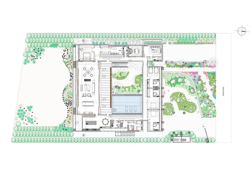 upper floor spaces are organized around a serene central patio