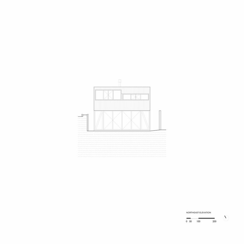 Elevated three meters above the street, Croxatto y Opazo Arquitectos’ La Lagunita takes shape as a white wooden cube measuring seven meters in width and 5.5 meters in height. The architects top the cubic home with a rooftop terrace, which opens toward panoramic views of Maitencillo, Playa Laguna, and the town of Laguna. Upon entering the Lagunita House, a living room, dining room, and kitchen unfolds in an open plan. Interiors are finished with raw insigna pine wood, treated with a gentle white wash of paint. While the southern side of the home is private and closed-off, the home opens broadly out to the north through large pine windows, facing broadly toward the coast. A small terrace further extends the living space outward, and further invites nature indoors.
