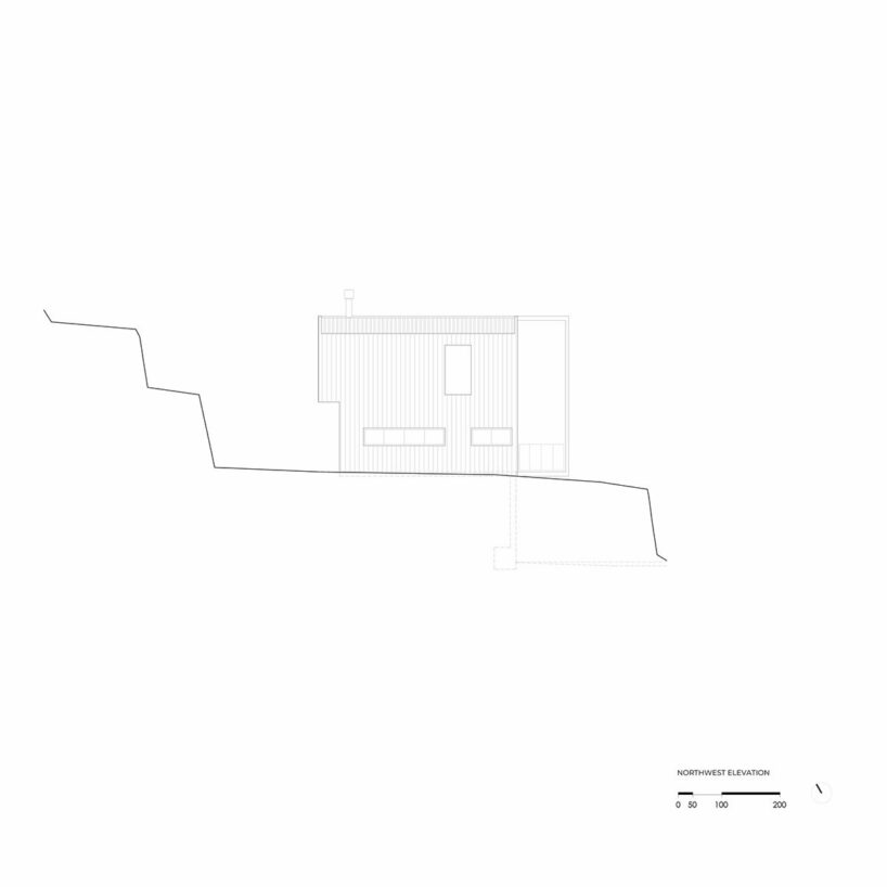 the interior, finished in raw insigna pine, opens broadly to the north and invites nature in through large windows