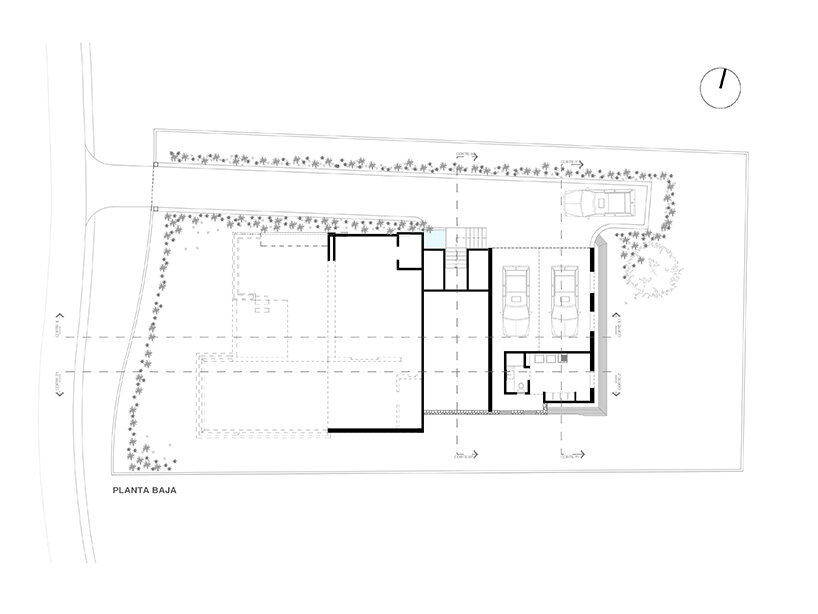 the project sits like a ring placed over the terrain, with its funnel-like roof forming a shaded perimeter walkway and an introverted core.