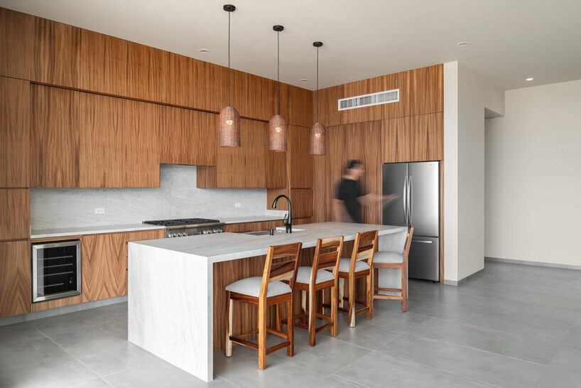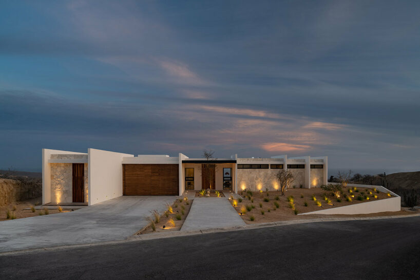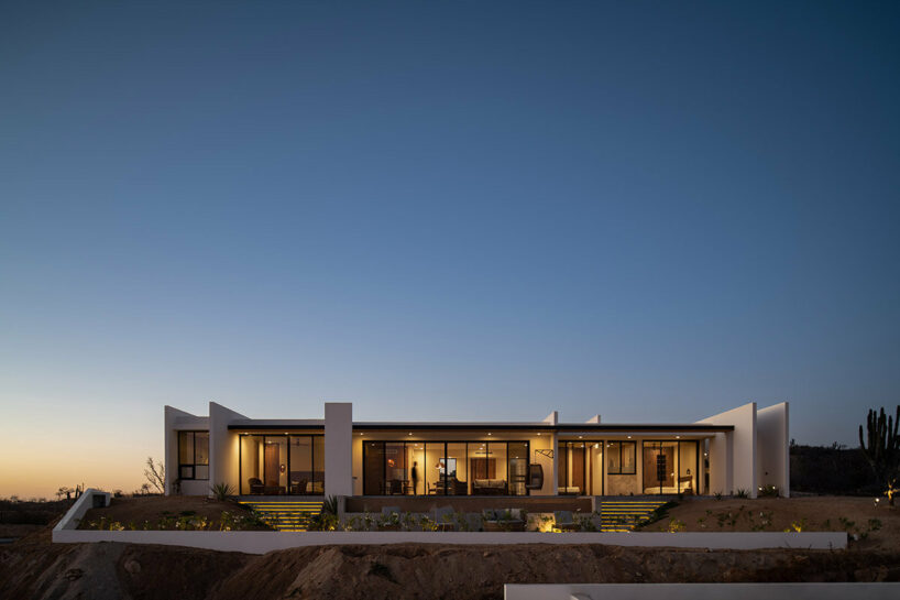 the project sits like a ring placed over the terrain, with its funnel-like roof forming a shaded perimeter walkway and an introverted core.