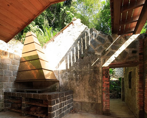 in taipei, taiwan, an abandoned farmhouse which was once a meeting place in the surrounding jungle, has been transformed into a home for a family, by finnish-based casagrande laboratory. ‘ultra-ruin’ provides multifunctional spaces for various activities, including meditation areas, that are promoted in the open form of the building. in order to keep integrity to the history of the former gathering place, the first built object in the renovated structure was a table; used to discuss with the client the visions of project’s renewal. the table now is the site of a large dining area and is distinguished in the plan as a connecting volume.