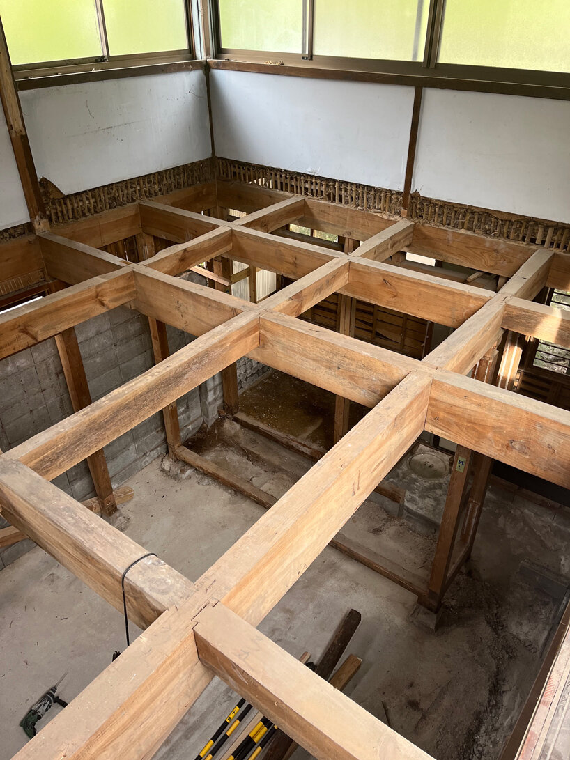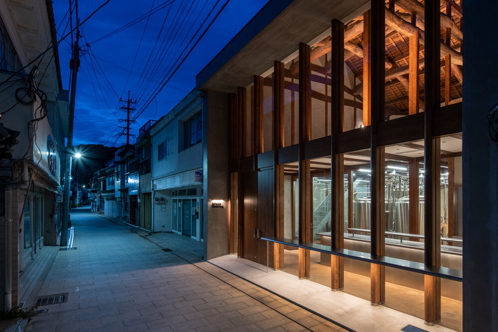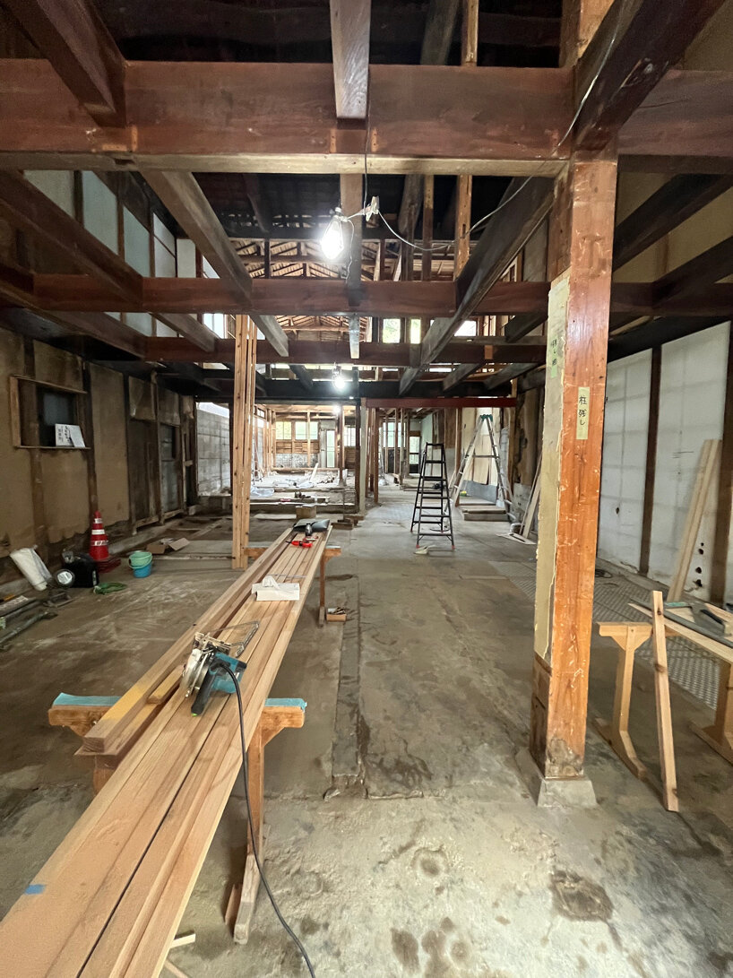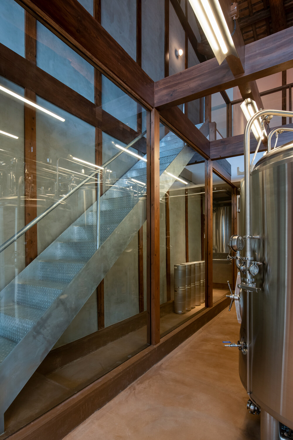 the façade made predominantly from glass, exposes the interior’s wooden framework