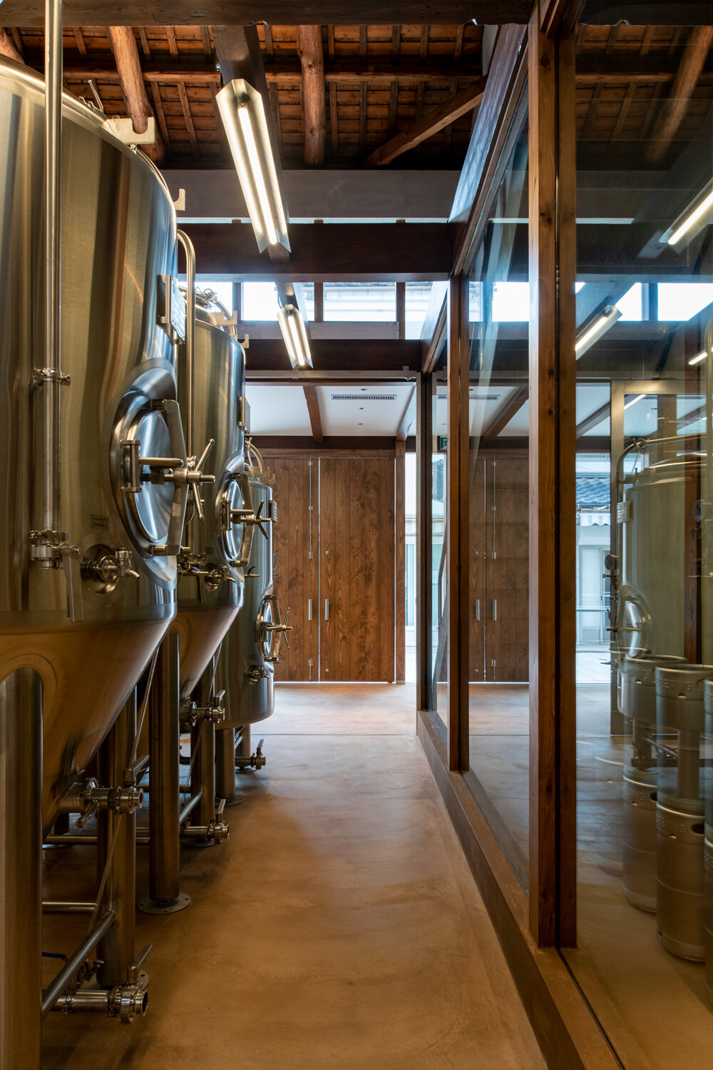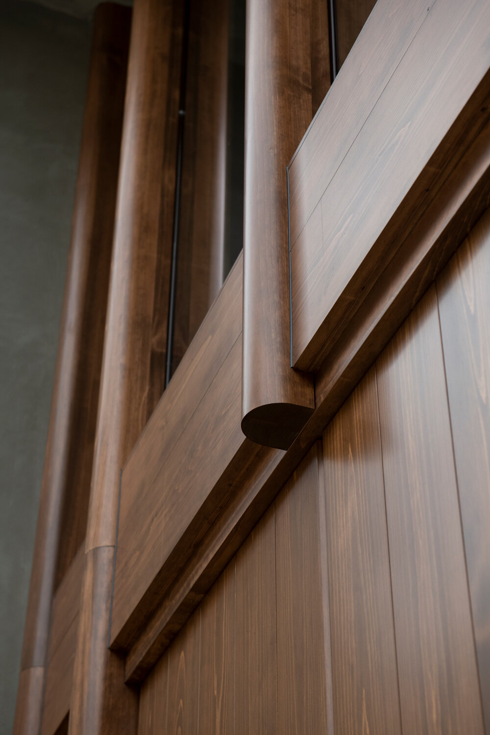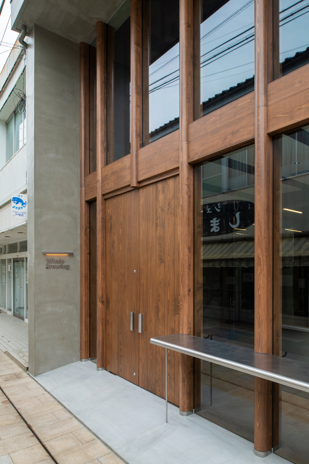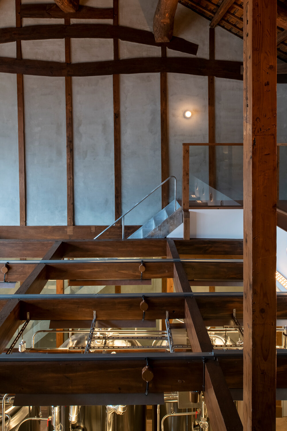 the façade made predominantly from glass, exposes the interior’s wooden framework
