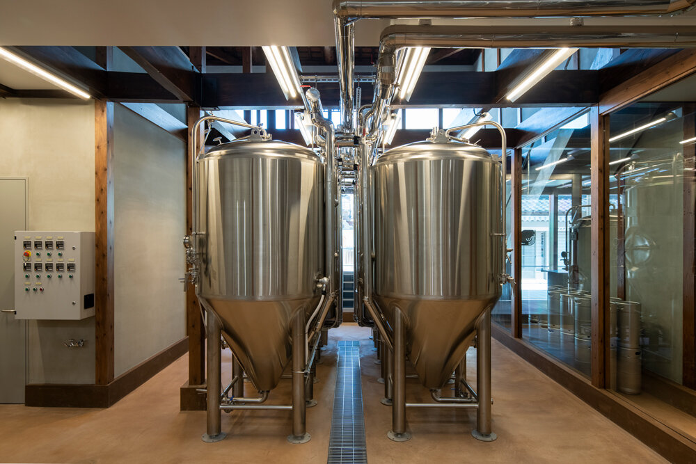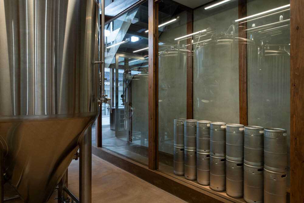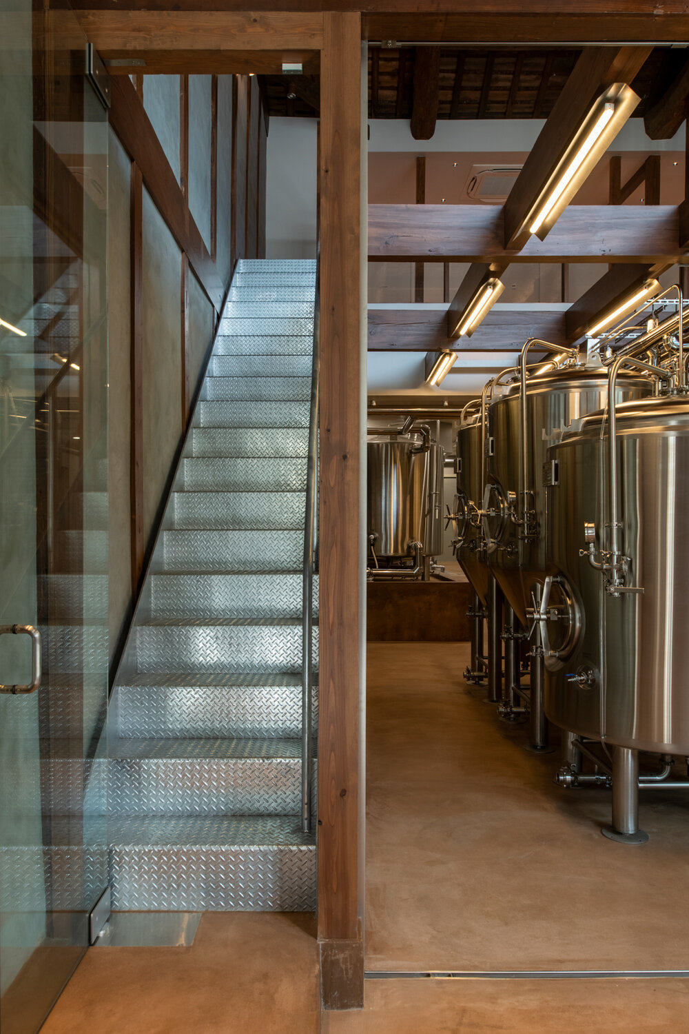 the utilization of stainless steel for several elements, including the counter and handles, echoes the brewing equipment