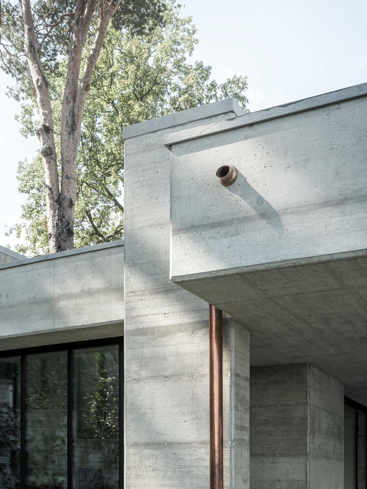 timber formwork imprints give the concrete walls a tactile and structural presence