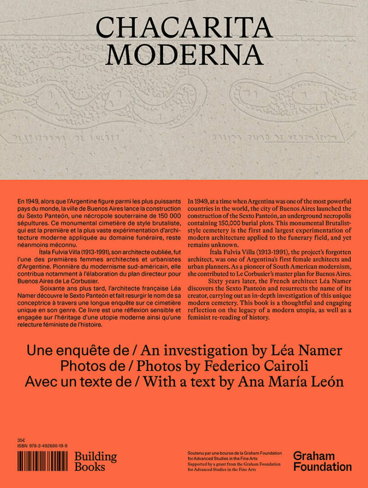 Sexto Panteón is a monumental underground necropolis in Buenos Aires, Argentina. Designed in 1949 by the female architect Ítala Fulvia Villa (1913-1991), this Brutalist-style cemetery stands as the first and largest example of modern architecture in the funerary field, yet it remains largely unknown. 60 years after its creation, French architect Léa Namer rediscovers Sexto Panteón and revives interest in its architecture and its forgotten creator through a new book dubbed Chacarita Moderna. In the new volume, Namer delves deeply into this unique cemetery, offering a thoughtful reflection on the legacy of modern utopia and providing a feminist re-interpretation of history.