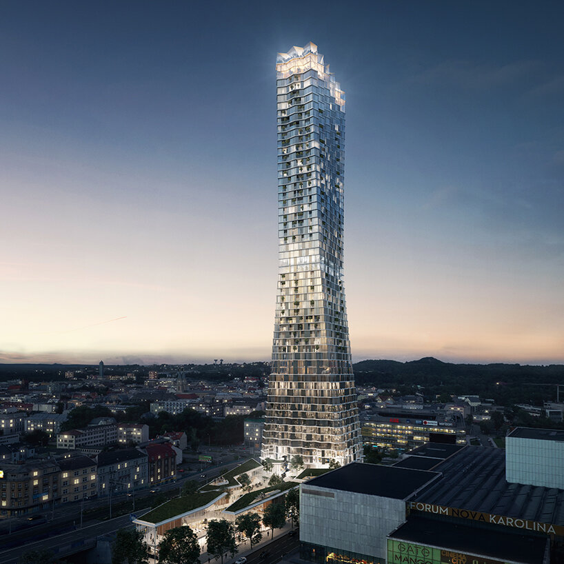 CHYBIK + KRISTOF unveil plans for the construction of ostrava tower, which will soon stand as the tallest skyscraper in the czech republic. the structure will rise 235 meters (770 feet) above the heart of ostrava’s city center. initiated by the architects in 2019, their latest urban infill project addresses the need to reconsider the typology of the skyscraper into a new functional entity responsive to the contemporary social needs, and in this case, the rehabilitation and reactivation of the post-industrial town of ostrava. the tower’s construction is expected to complete in 2027.