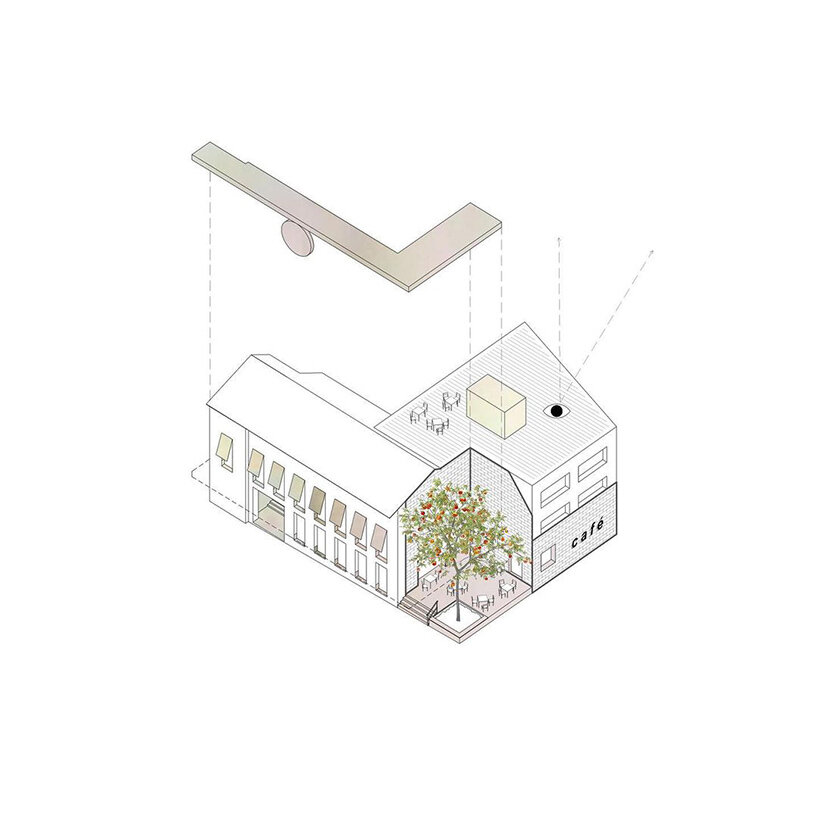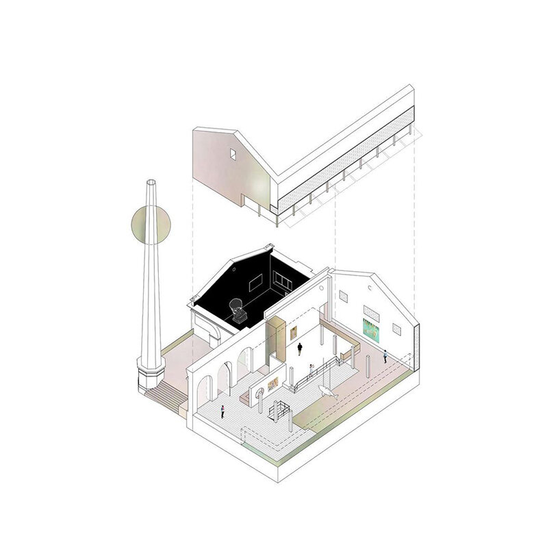 Following a decline in the prosperous textile industry during the 20th and 21st centuries, the former Pearl factory was shut down in 2009 and ever since, its vast facilities began shrinking in size. Only the three most prized buildings remained: a production building designed by renowned Czech architect Pavel Janak, an office extension of the block, and a machine building from the 19th century. In reconceptualizing the restoration of the factory’s remains, CHK divided the existing mass into two buildings, providing the future gallery with multiple functions and creating new public pathways and spaces between the buildings.