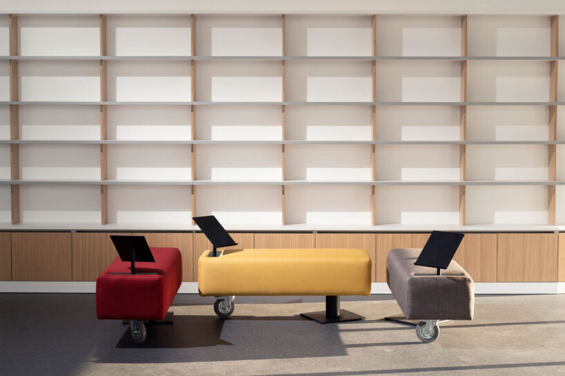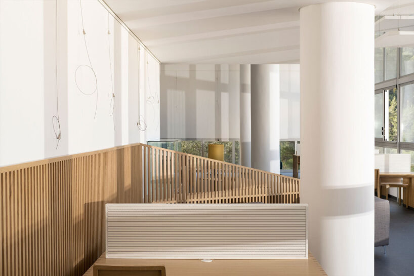 the new wing includes a double-height library and multipurpose auditorium