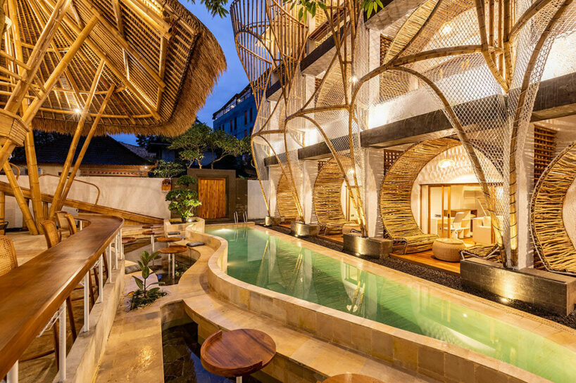 hotel renovation in bali celebrates bamboo with co-living space for digital nomads